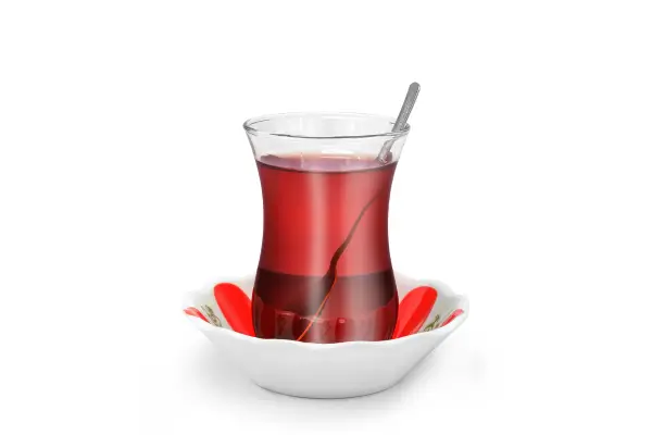 O chá turco perfeito deve ter uma cor avermelhada intensa, quase como cereja madura.